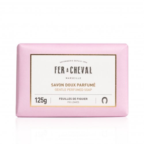 Hier bieten wir eine milde Marseille Seife mit Feigenblätterduft von "Le Fer à Cheval" an. Ein 125 g Stück.